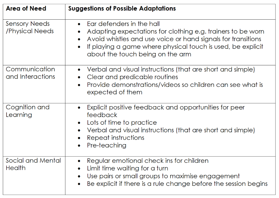 Ensure that all strategies that are on individual’s OPP or EHCP are used in all PE lessons by all staff.