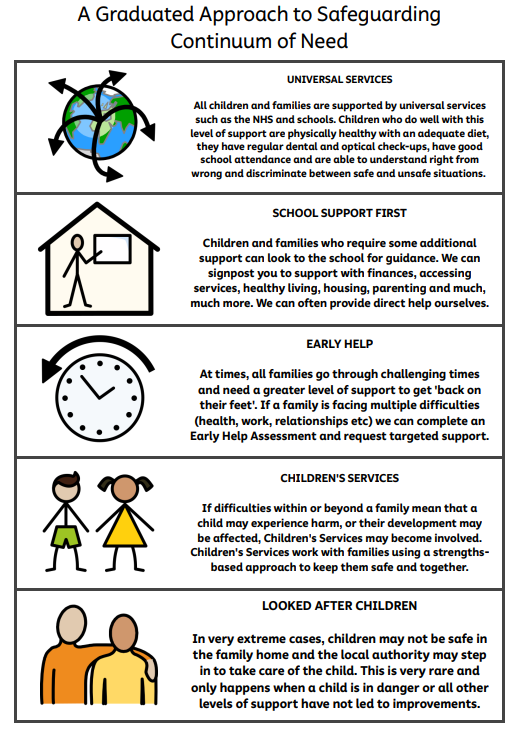 Our goal is to work positively with all families to spot the need for support as soon as possible and put the right things in place for the family - the right help at the right time.