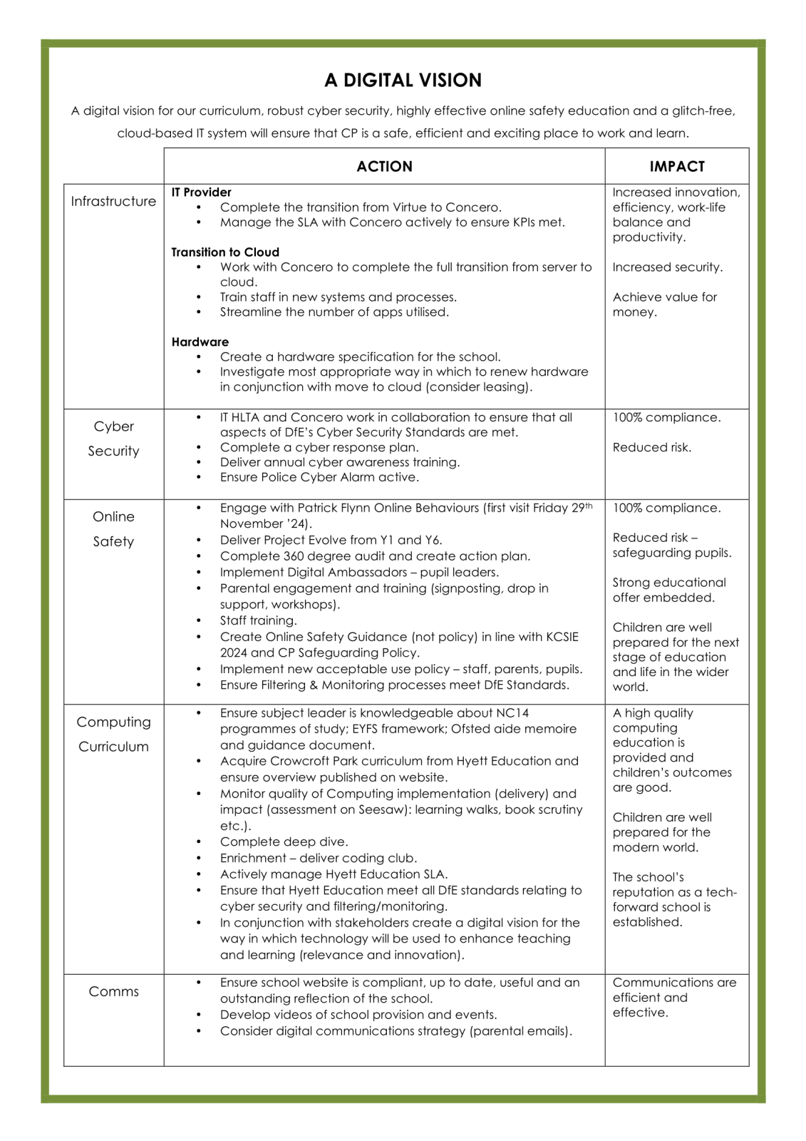 We are introducing a new curriculum for Computing this year. In addition, we need to look ahead to develop an approach to Artificial Intelligence and consider our digital strategy to support pupils to flourish in the modern, ever changing world.
